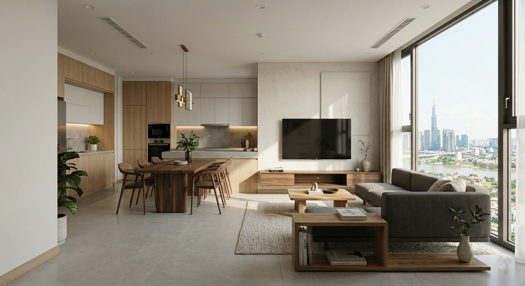 Phong cách tối giản không đơn thuần là sự lược bỏ, mà là nghệ thuật sắp đặt "Less is More". WOOD TECH sở hữu đội ngũ kiến trúc sư giàu kinh nghiệm, am hiểu tường tận về tỷ lệ không gian, sự kết hợp ánh sáng và màu sắc trung tính. Chúng tôi giúp tối ưu hóa diện tích chung cư, tạo ra cảm giác rộng rãi nhưng vẫn đảm bảo sự sang trọng và ấm cúng.