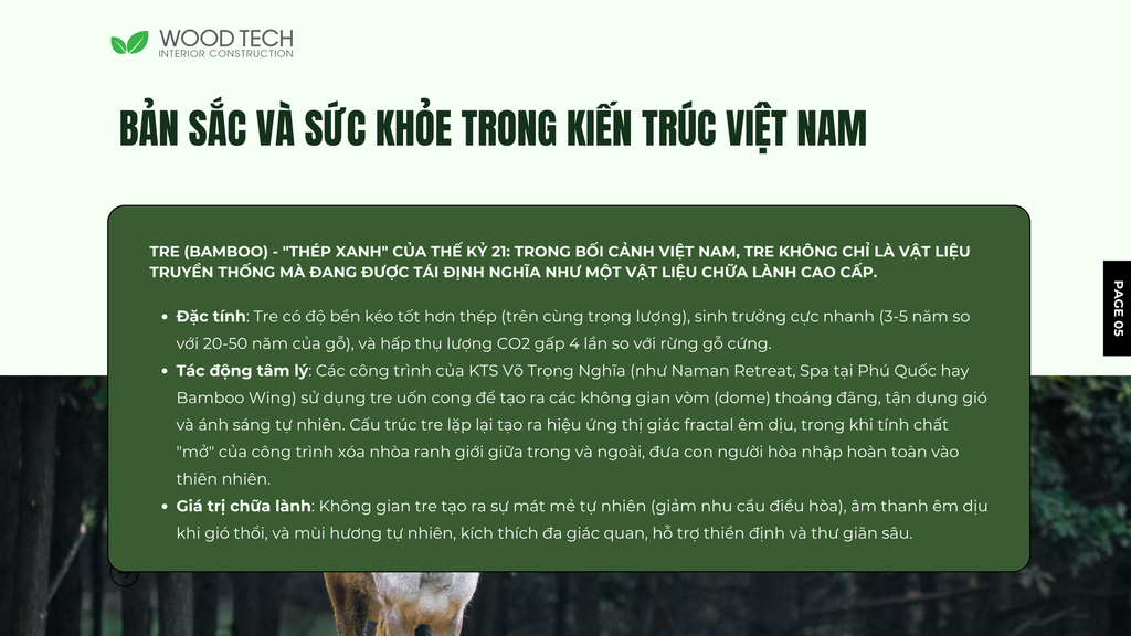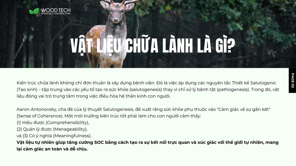 Chữa lành đã trở thành xu hướng và nhu cầu của con người hiện đại trong cuộc sống ngày càng nhiều áp lực. Đòi hỏi kiến trúc và nội thất không chỉ tạo nên không gian sống đơn thuần về thẩm mỹ và tiện nghi, còn phải đám ứng nhu cầu "chữa lành" và xoa dịu tâm hồn của con người.